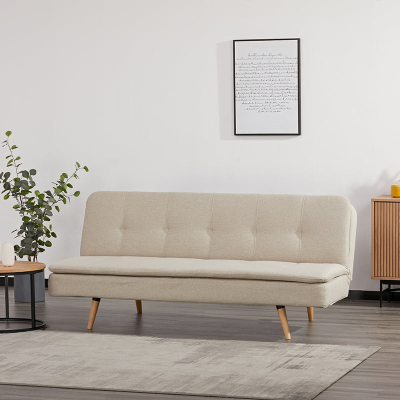 Canapea sistem click-clack ce poate fi folosită atât ca canapea în timpul zilei, cât și ca pat pe timp de noapte. Acest lucru este ideal pentru camere de zi, camere de oaspeți sau garsoniere. Ideală pentru spații mici sau pentru camere care au nevoie de flexibilitate în utilizare. Designul compact și versatil permite economisirea de spațiu, făcând-o ideală pentru apartamente mici sau camere multifuncționale.