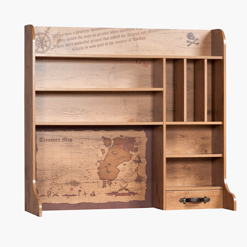 Cu un aspect elegant, din lemn atent finisat, biroul Black Pirate a fost creat să-i ofere copilului un mediu de studiu confortabil: blatul este lat, iar rafturile și sertarele se află la indemână, astfel încât să poată găsi repede ceea ce caută.