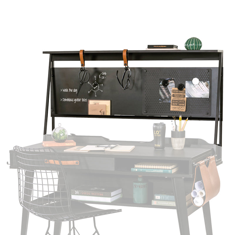 Corpul superior de birou Dark Metal are o structură caracteristică inspirată de tablele de clasă: o suprafață de lemn pe care pot fi scrise notite cu creta sau cu creionul și un panou metalic adecvat pentru utilizarea magneților. Cadrul metalic asigură o utilizare de lungă durată.