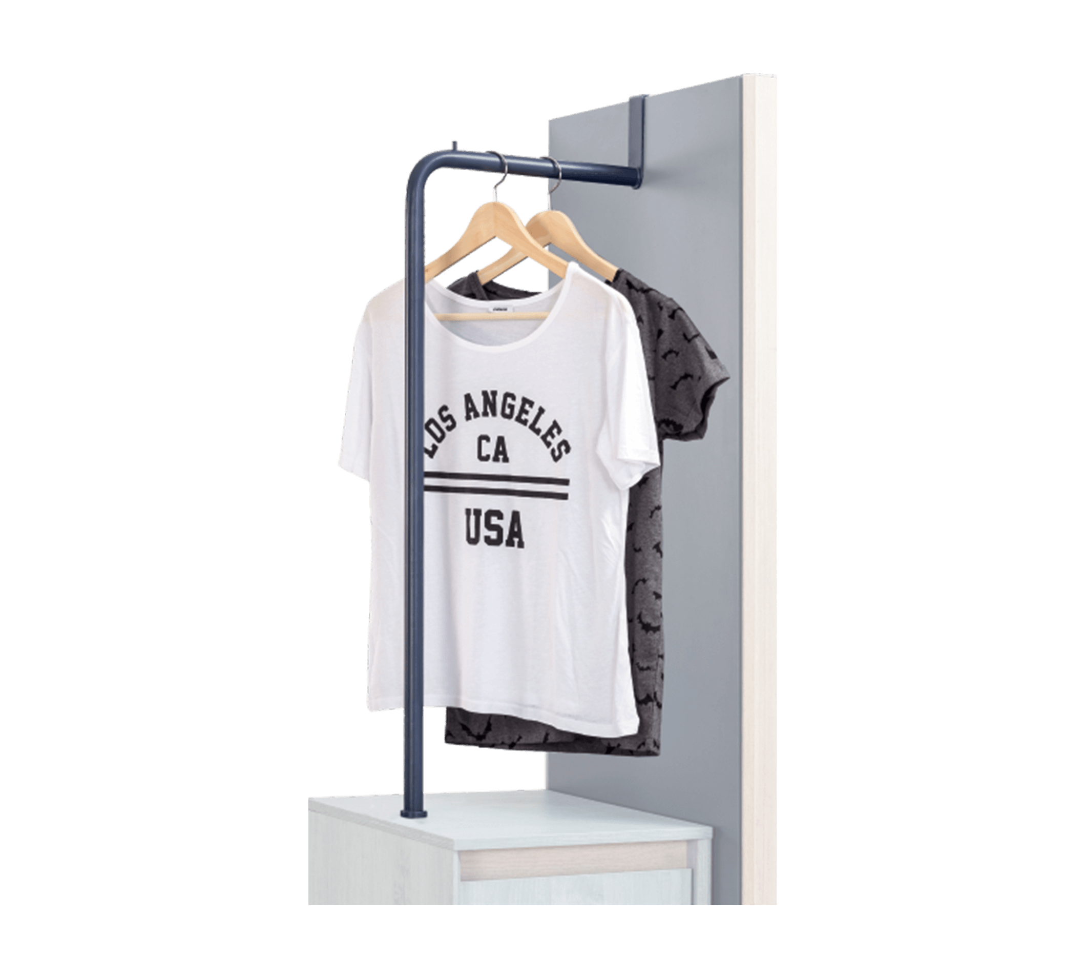 Cuier lateral Trio, deosebit de util pentru organizarea hainelor în camera unui adolescent. Se montează pe lateralul dulapului și oferă siguranță în utilizare fiabilă datorită materialelor solide din care este realizat.