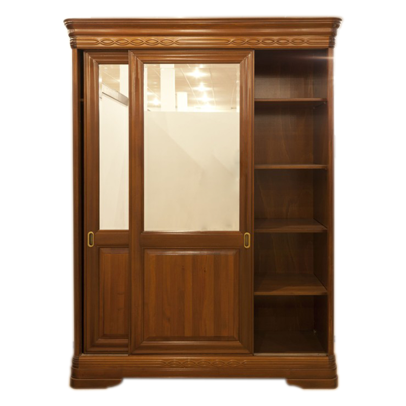 Dulap din lemn masiv din seria Cardinal, cu uși culisate pentru a reduce spațiul de deschidere si pentru a ușura accesul. Dulapul dispune, de asemenea, de oglinzi pe fiecare ușa.