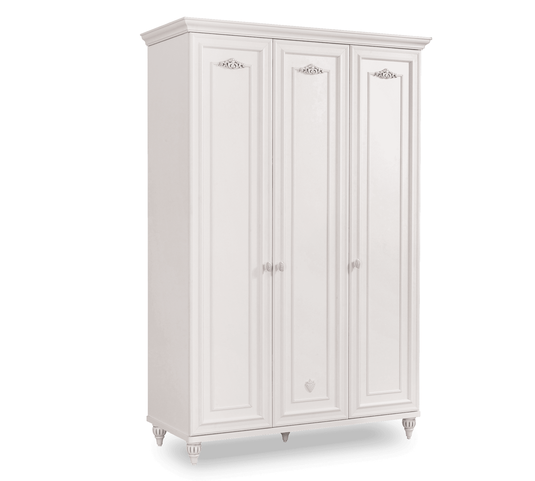 Cu designul său simplu, alb, dulapul Romantica cu 3 uși adaugă un volum semnificativ de spațiu de depozitare în camera copiilor. Secțiunea de umeraș iluminat ușurează selectarea hainelor, în timp ce numeroasele rafturi ajută la menținerea în ordine a acestora.