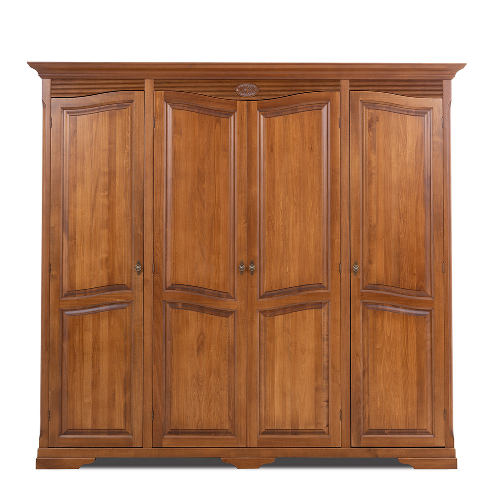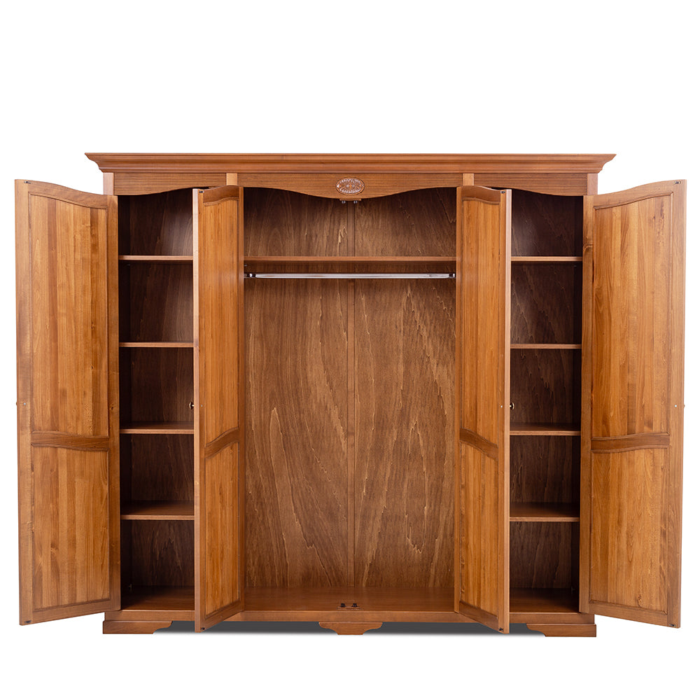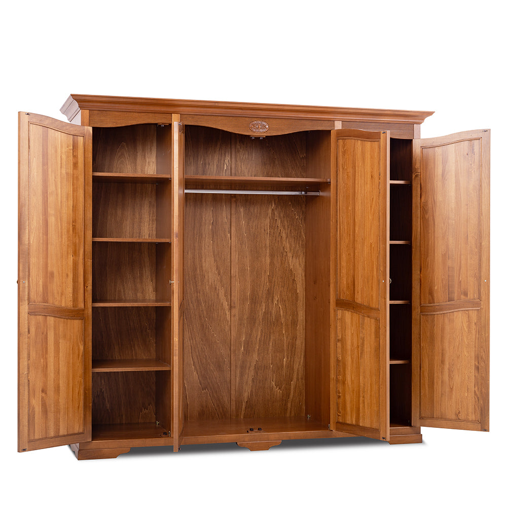 Dulap cu 4 uși din seria Florance, cu un șifonier spațios așezat central și spații cu rafturi așezate lateral. Construcția solidă din lemn masiv îi asigură rezistență și durabilitate.