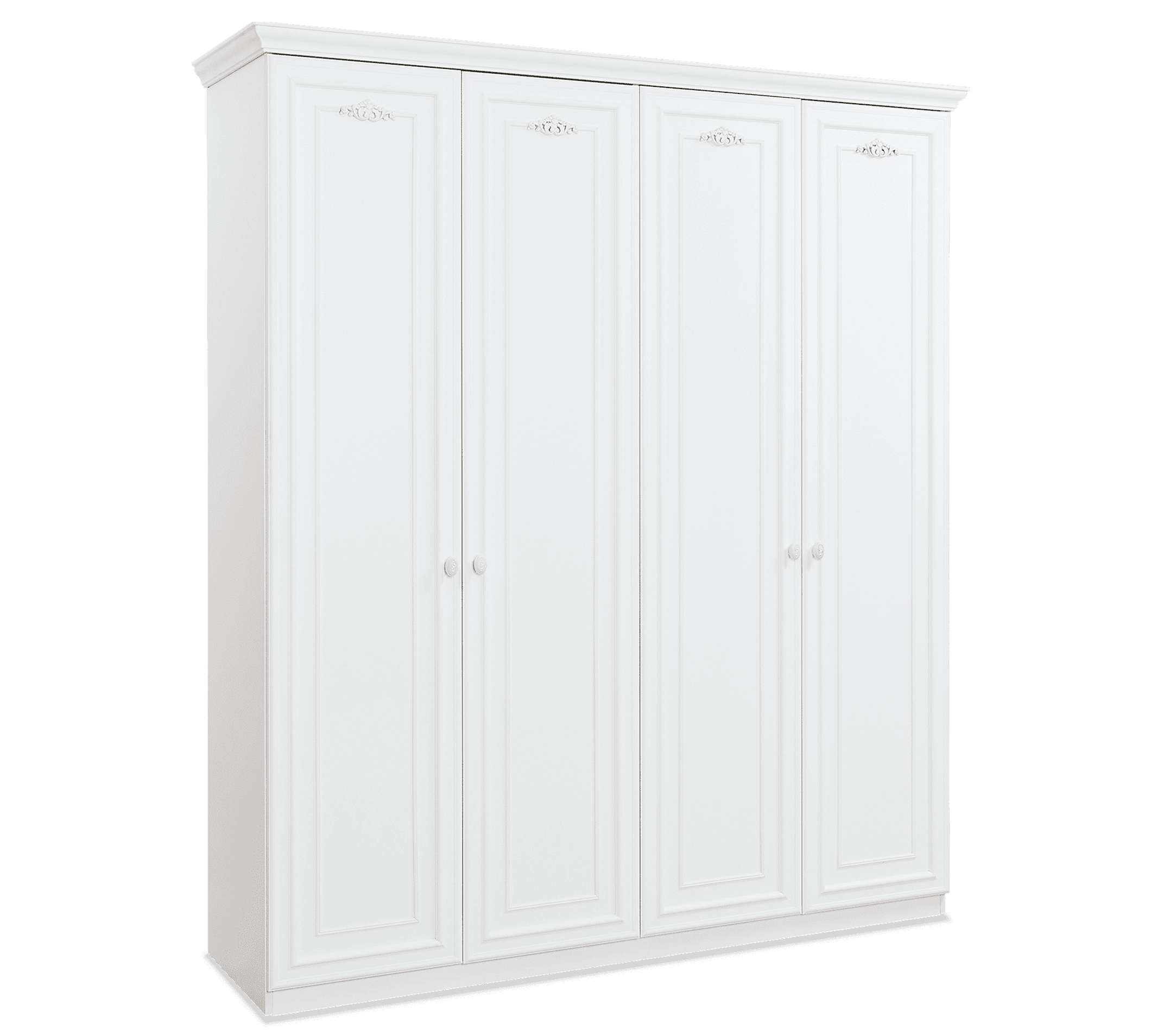 Cu designul său simplu, alb, dulapul Romantica cu 4 uși adaugă un volum semnificativ de spațiu de depozitare în camera copiilor. Secțiunea de umeraș iluminat ușurează selectarea hainelor, în timp ce numeroasele rafturi ajută la menținerea în ordine a acestora.