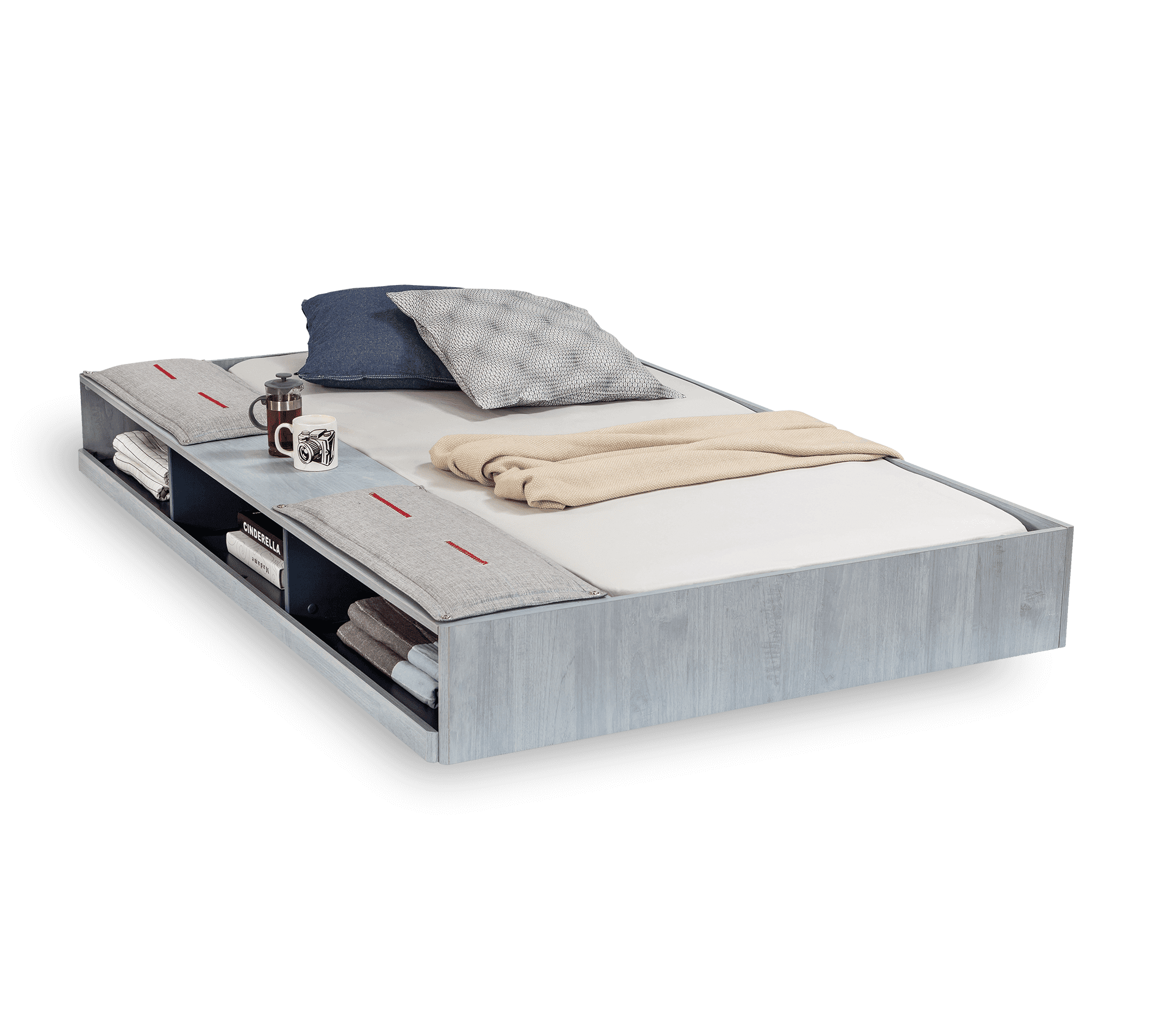 Lada pat complexă Trio poate fi folosită ca un al doilea pat sau ca secțiune de depozitare împreună cu paturile model Trio. Compartimentul lateral rămâne afară atunci când patul inferior este împins sub pat, putând fi folosit pentru organizarea obiectelor personale.