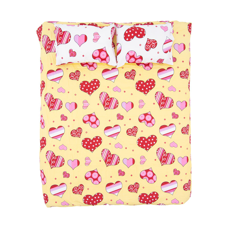 - Setul conţine: 1 cearşaf de plapumă 200 x 220 cm, 1 cearşaf de pat 160 x 200 cm, 4 feţe de pernă 50 x 70 cm