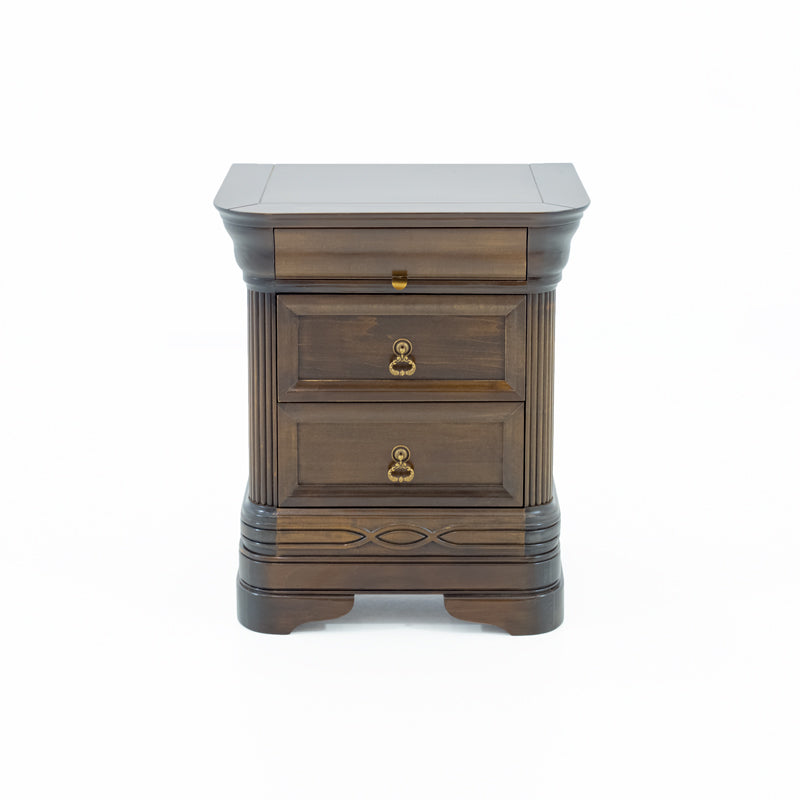 Robustă și compactă, realizata din lemn masiv, noptiera Cardinal completează excelent dormitorul din aceasta gamă sobră și elegantă.