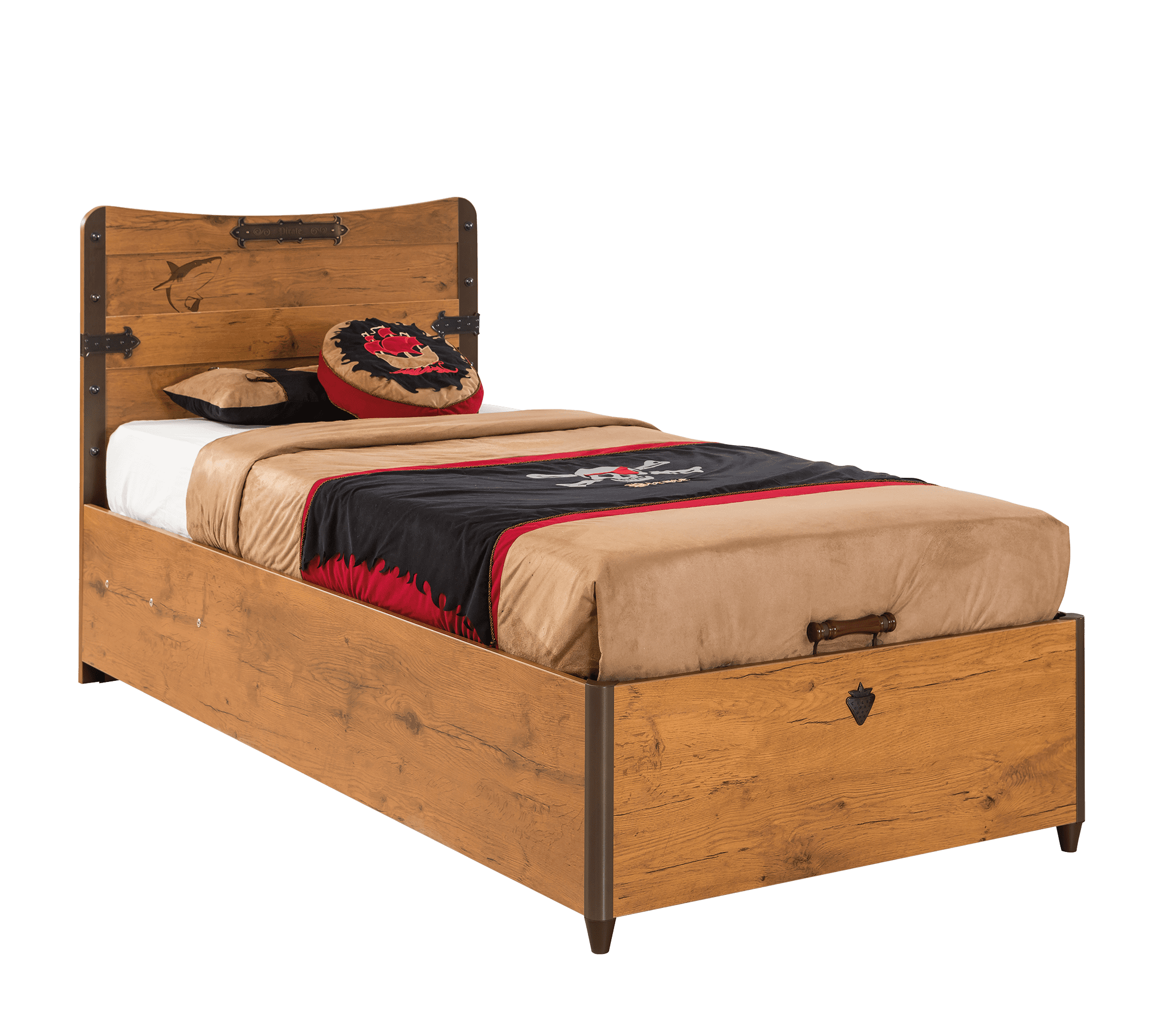 Patul cu ladă Black Pirate este perfect pentru micii aventurieri, având un design tematic cu pirați și un spațiu generos de depozitare sub saltea. Ideal pentru un somn confortabil și plin de imaginație.