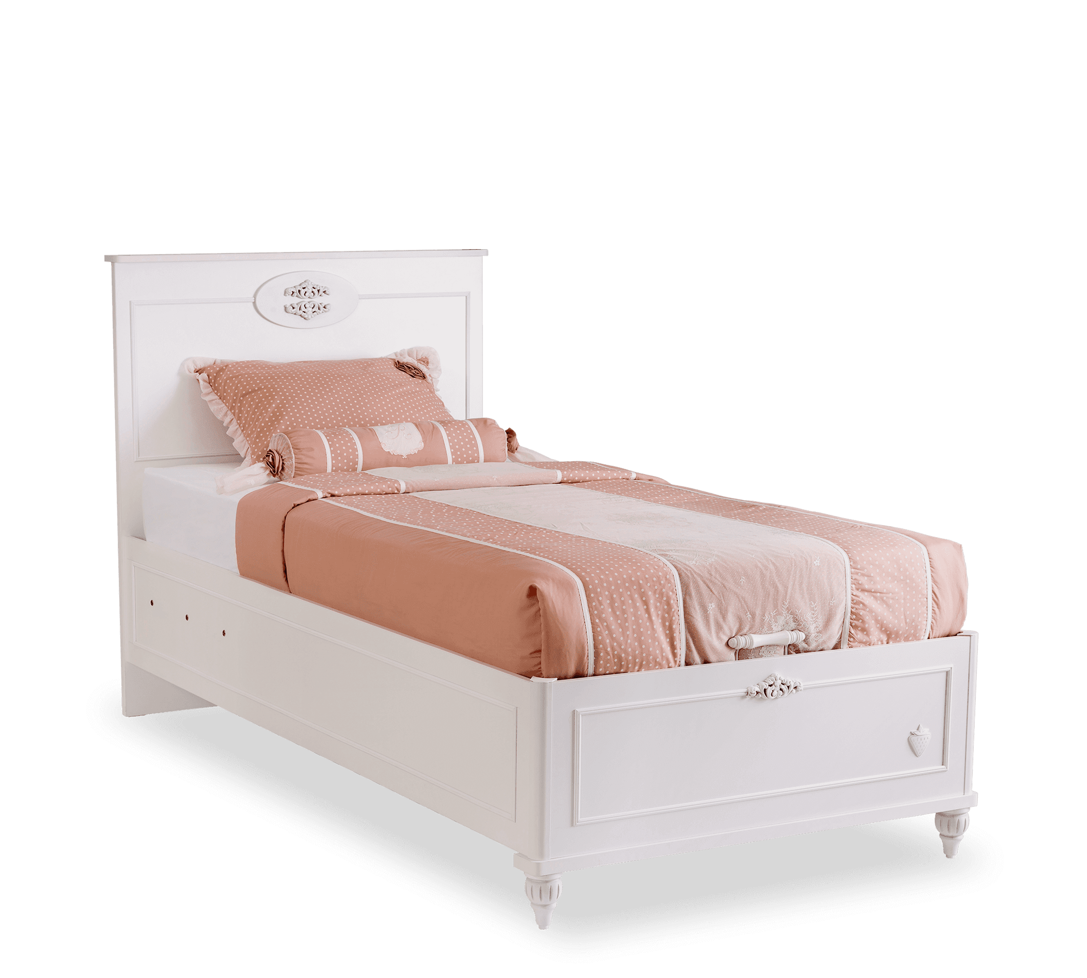 Patul cu ladă Romantica oferă, pe lângă un confort deosebit în timpul somnului, un spațiu generos de depozitare dotat cu încuietoare de siguranță cu amortizor.