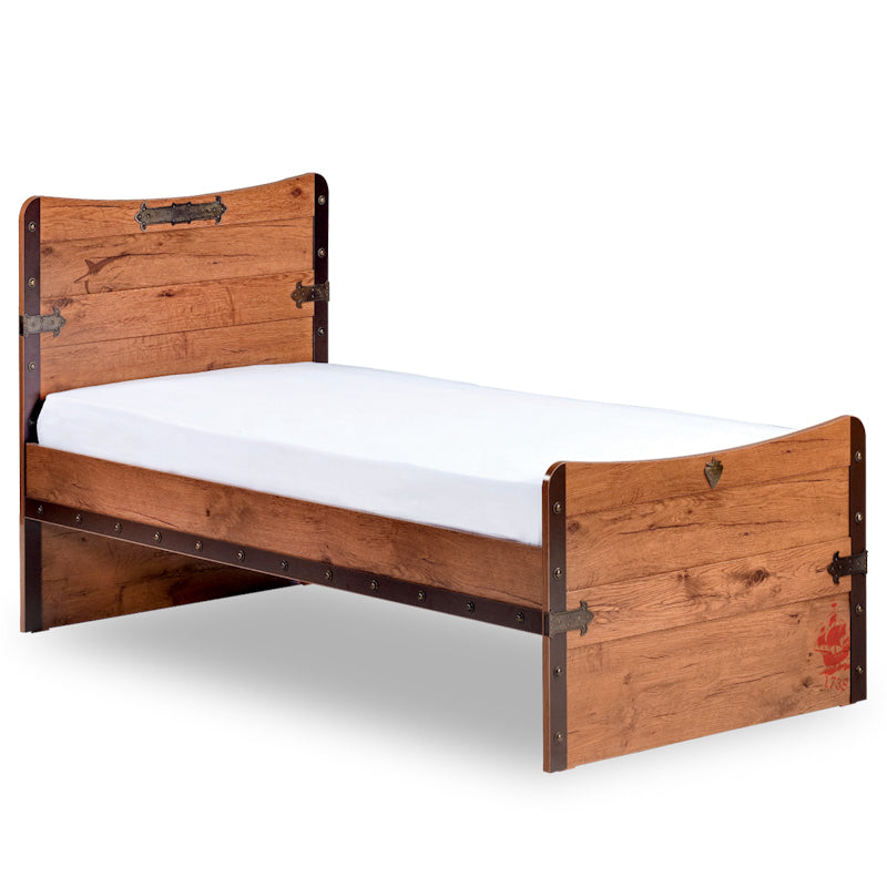 Pat single Black Pirate, inspirat de siluetele navelor, cu o structură rezistentă din lemn și colțuri rotunjite. Dimensiunile de 100x200 cm, respectiv 120x200 cm, care sunt mai mari decât cele standard, le oferă tinerilor spațiile confortabile de care au nevoie.