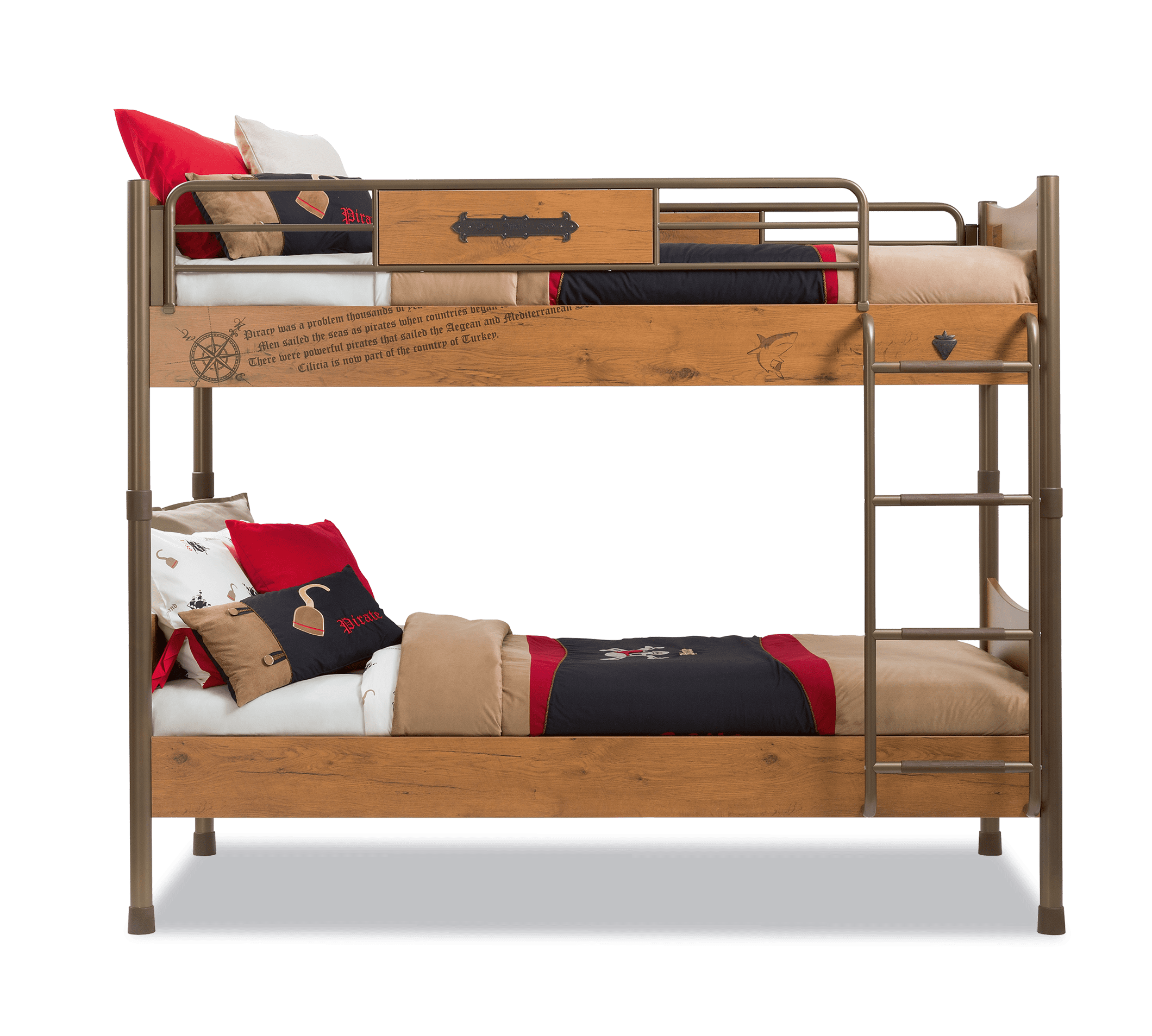 Cu patul supraetajat Black Pirate puteți aduce spiritul mării libere în camera copiilor, creând o atmosferă de cabină de navă. Produsul poate fi utilizat atât ca pat supraetajat cât și ca două paturi de o persoană. Cu cadrul său din metal și aluminiu, puteți crea spații sigure pentru copiii dvs., pe care le puteți îmbogăți decorativ cu scări și balustrade conectabile. Capacitatea maximă de încărcare a fiecărei zone de dormit este de maximum 130 kg.